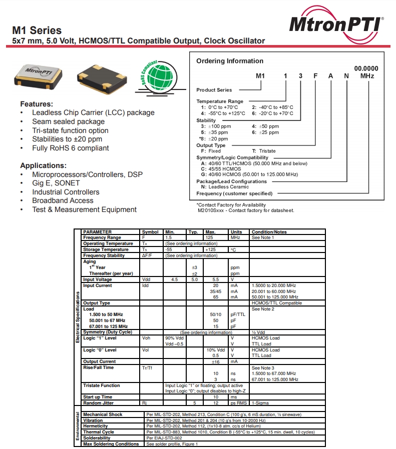 | MTRONPTI晶振規(guī)格 | 單位 | M1晶振 | 石英晶振基本條件 |