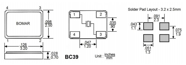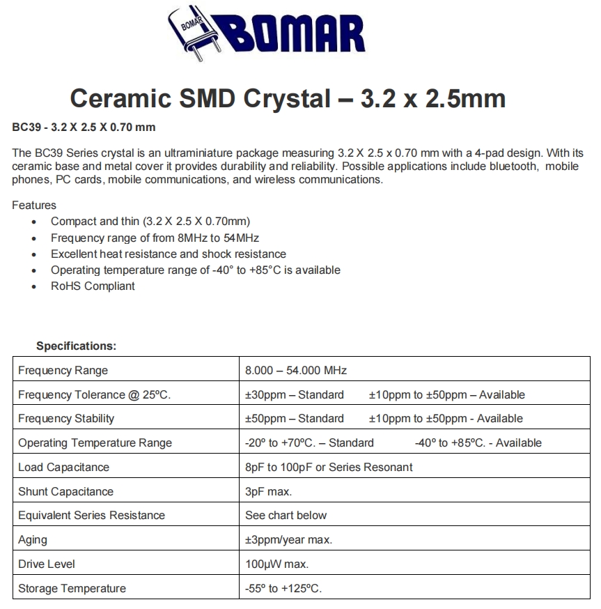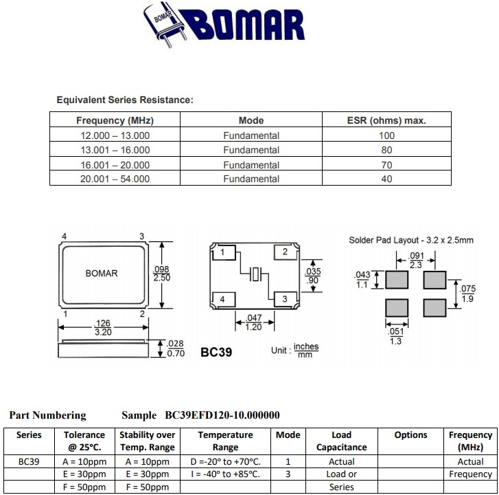 Bomar晶振,BC39EFD120-18.000000,6GWIFI應(yīng)用晶振規(guī)格表