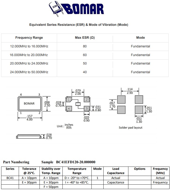 美國(guó)Bomar晶振,BC41AAD118-32.000000,6G移動(dòng)通信晶振規(guī)格表