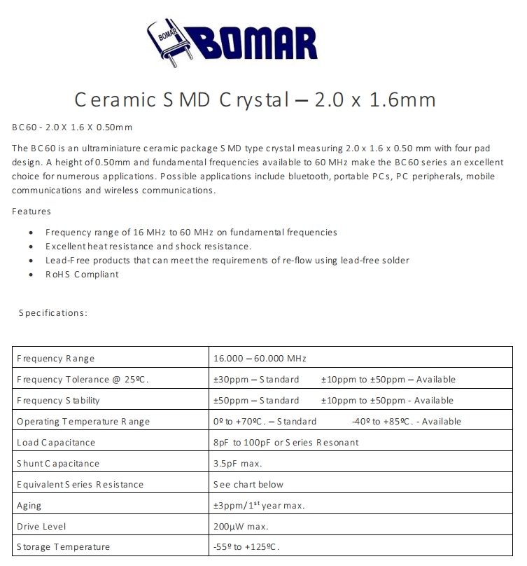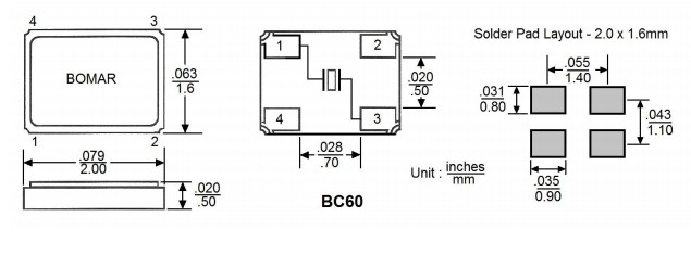 美國Bomar晶振,BC60進(jìn)口貼片晶振,6G移動(dòng)設(shè)備晶振規(guī)格表