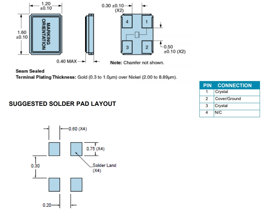 | EA1620MA12-20.000M | 表面貼裝晶體諧振器 | Crystal Resonator 20MHz ±15ppm (Tol) ±20ppm (Stability) 12pF FUND 120Ohm 4-Pin CSMD Bulk | -40~85 |