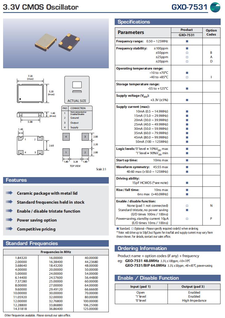 Golledge Crystal|GXO-7531/BI 24.5760MHz規(guī)格表