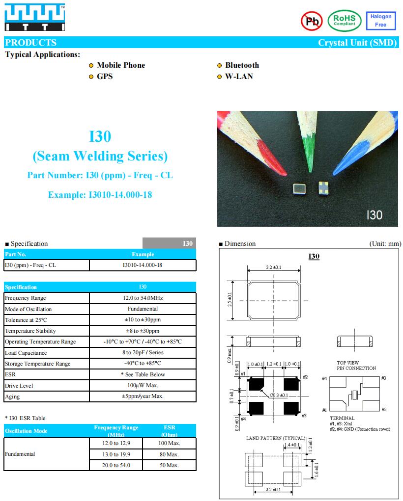 美國ITTI晶振,I3010-12.000-18,6G路由器晶振規(guī)格表