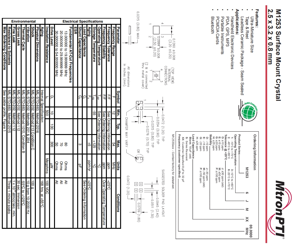 | MTRONPTI晶振規(guī)格 | 單位 | M1253晶振 | 石英晶振基本條件 |