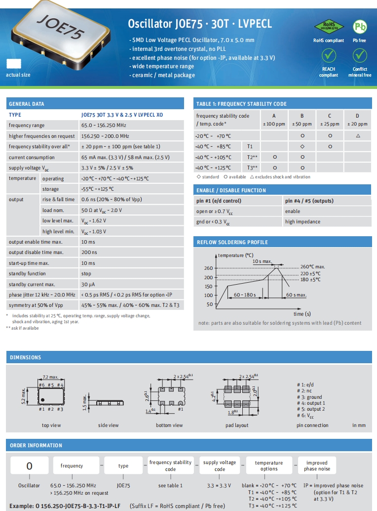 O.168.0-JOE75-A-3.3-T3-IP-LF|OSCILLATOR規(guī)格表