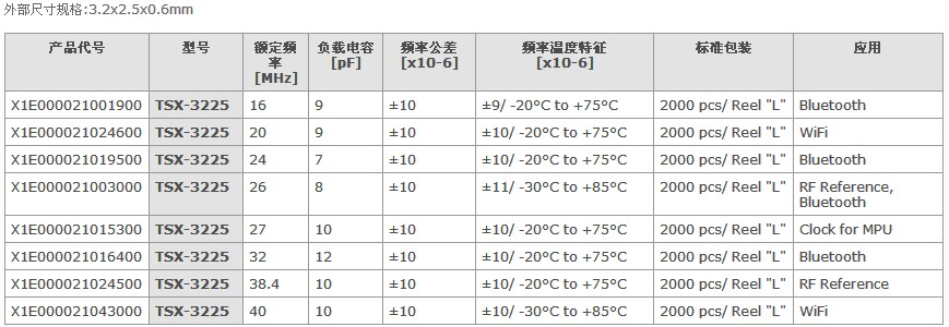 愛(ài)普生晶振TSX-3225頻率一覽表