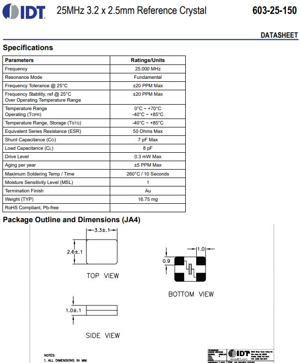 | IDT晶振規(guī)格 | 單位 | 603-25-150晶振 | 石英晶振基本條件 |