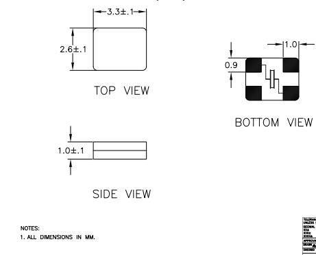 IDT艾迪悌晶振603-25-150,603-25-150JA4C音叉晶體 尺寸圖