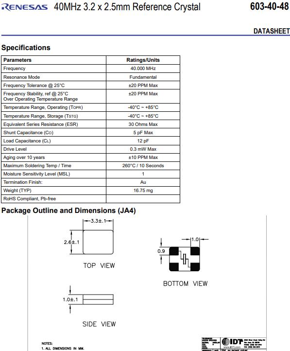 | 800-2966-ND | 603-40-48JA4I | IDT, Integrated Device Technology Inc | CRYSTAL 40MHZ 5PF SMD |