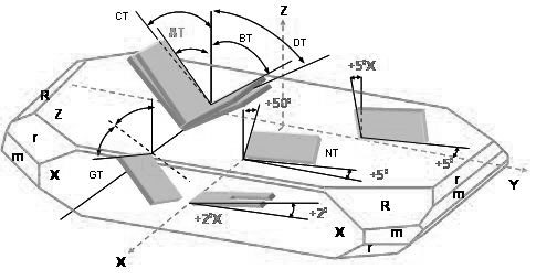 根據(jù)不同的應(yīng)用領(lǐng)域以及工作溫度需求,也有了很多許多不同的石英切割角度分類。例如AT-,BT-,CT-,NT,GT....等不同的切割板片. 不同的切割方向的板片具有不同的彈性常數(shù)張量(elastic constant tensor), 不同的壓電常數(shù)張量(piezoelectric constant tensor)及不同的介電常數(shù)張量(dielectric constant tensor). 這些張量在石英組件的設(shè)計及應(yīng)用上展現(xiàn)了不同的振蕩及溫度特性. 在各種不同種類的切割角度方式中, AT角度切割的石英芯片適用在數(shù)MHz到數(shù)佰MHz的頻率范圍,是石英芯片應(yīng)用范圍最廣范及使用數(shù)量最多的一種切割應(yīng)用方式.
