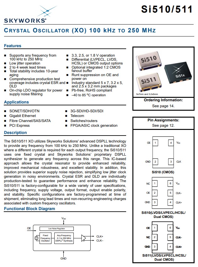 XO振蕩器511BBA148M500AAG提供從100kHz到250MHz的任何頻率