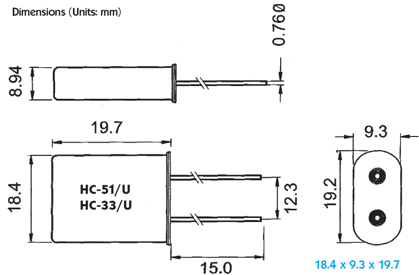 3、HC-49/U 1 - 150 MHz 11.2 x 4.7 x 13.6