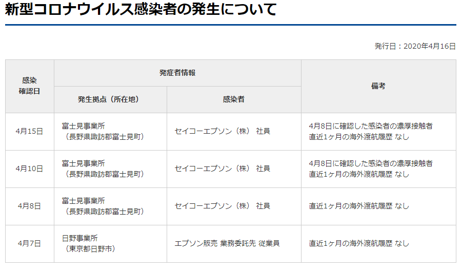 エプソンの「新型コロナウイルスへの対応について」は、下記ホームページを參照願います。