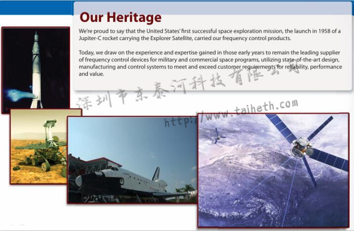 我們很自豪地說,美國第一次成功的太空探索任務(wù),即1958年發(fā)射的攜帶探測衛(wèi)星的Jupiter-C火箭,載有我們的頻率控制產(chǎn)品。