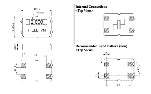 貼片晶振5070mm—4Pin,石英晶振