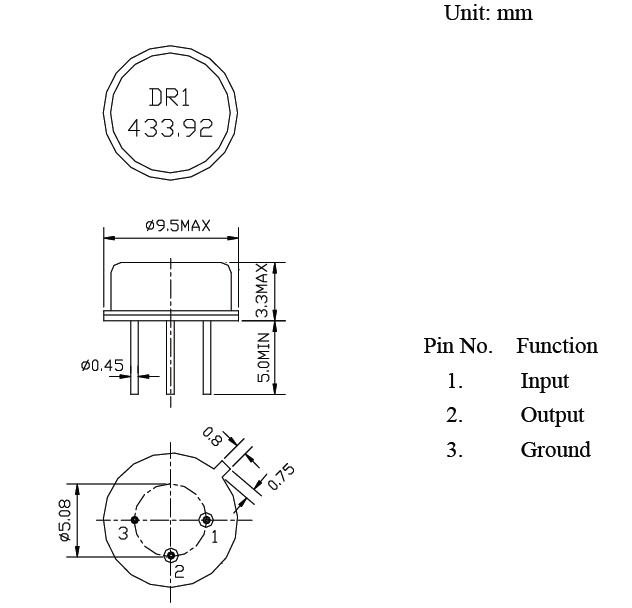 R433M TO-39聲表面諧振器-濾波器 尺寸