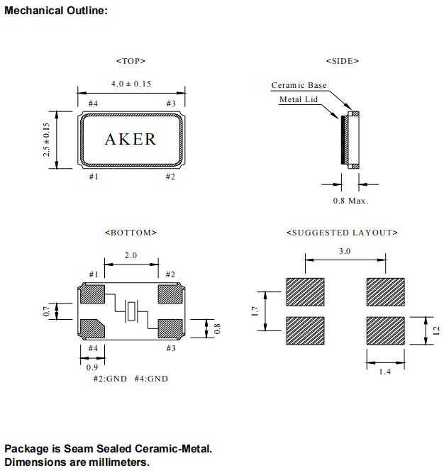 AKER晶振|C4S-16.000-32-1020-X-R|4025mm尺寸圖