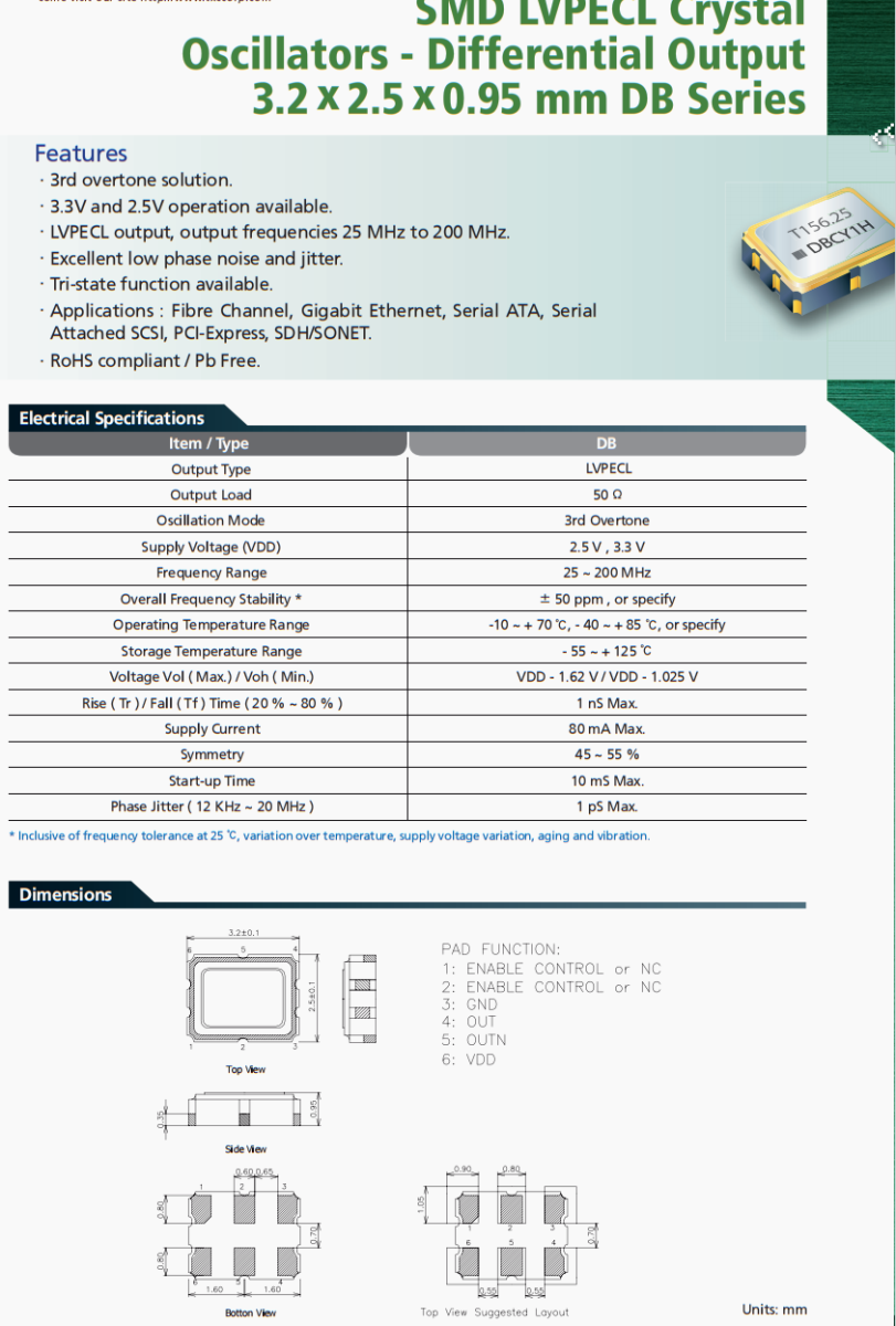 TXC晶振,DB差分LVPECL晶振,DBA5600005六腳晶振