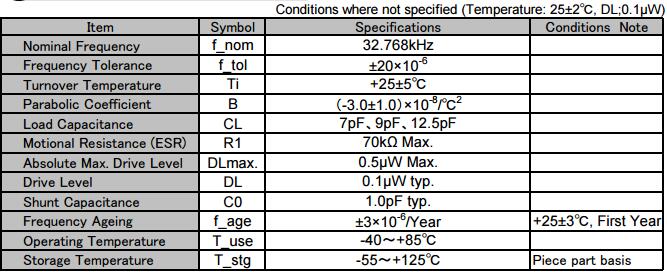 時鐘上用到的晶振,32.768K是數(shù)字電路板上最常見的了,做時鐘客戶經(jīng)常選用的音叉晶振為VT-200-F,該晶振體積僅有2*6mm(對應KDS為DT-26),采用了特有的光刻技術,以及小型管狀封裝,提供的頻率為32.768kHz±10ppm/±20ppm,負載電容為6.0pF或12.5pF。