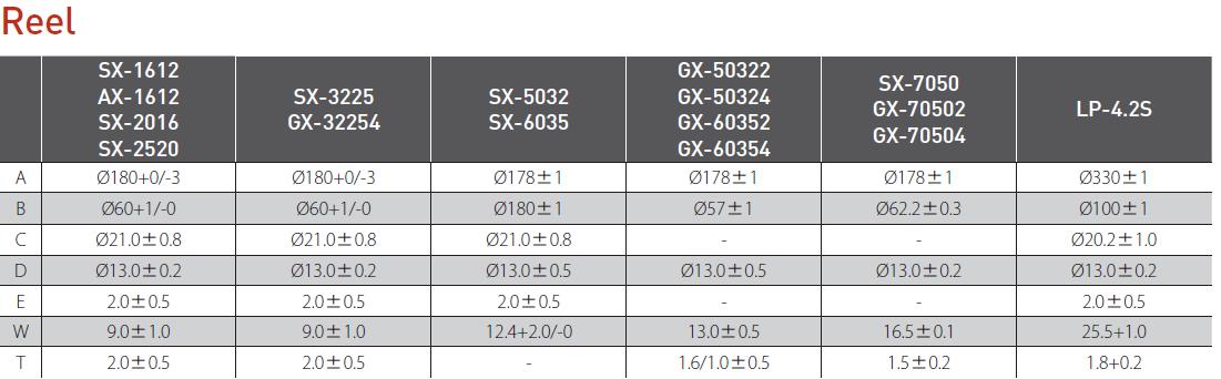 | 激勵功率 | DL | 10µW(100µW Max.) | 推薦:1µW ~ 100µW |