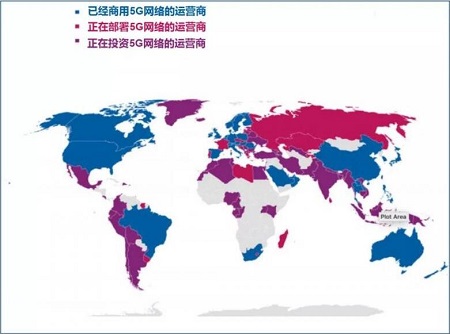 紫色的區(qū)域表示正在投資5G的國(guó)家,可以看出,除了非洲之外的地區(qū),5G基本也都正在投資中.由此也可以看出經(jīng)濟(jì)基礎(chǔ)決定了5G建設(shè)的進(jìn)程,一些技術(shù)先進(jìn),經(jīng)濟(jì)發(fā)達(dá)的國(guó)家的5G都已經(jīng)開始商用了,比如中國(guó).