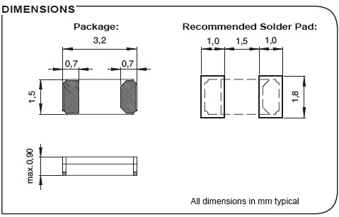 - 晶振尺寸:3.2*1.5*0.75mm 詳細(xì)資料參考PDF