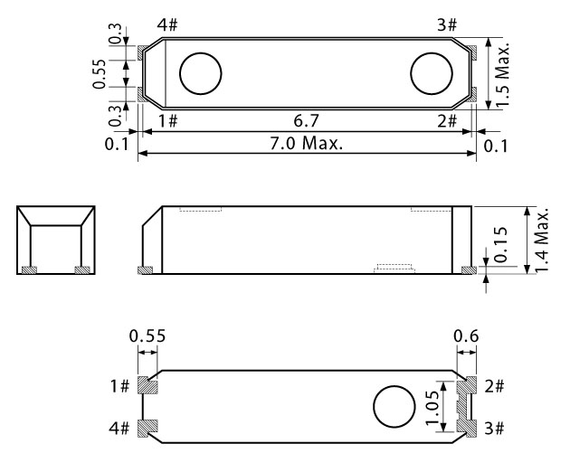 - 晶振尺寸:7.0*1.5*0.15mm詳細(xì)資料參考PDF